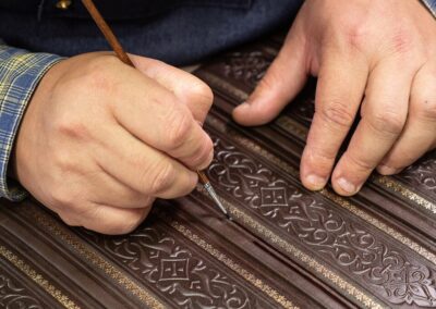 Your workshop begins with a friendly welcome and introduction to the history of leather in Fes. Your instructor will explain the cultural value of this craft, how the natural hides are sourced, and the significance behind the colors and patterns traditionally used. This brief presentation prepares you to fully appreciate the work you’re about to experience