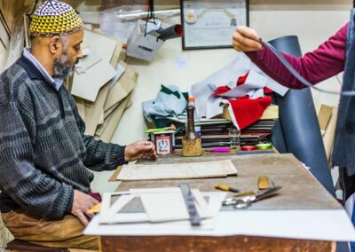 This exclusive workshop is designed for visitors who already have some experience in leatherworking or who want an in-depth, immersive encounter with advanced Moroccan techniques. Over a carefully guided session, participants work directly with master artisans, learning sophisticated skills such as detailed pattern design, advanced stitching, embossing, and finishing techniques that go beyond basic crafting.